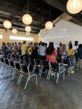 Smaller children have a room for eating together and toys to play with during the meeting. They are able to join the large group at any time!